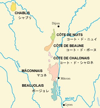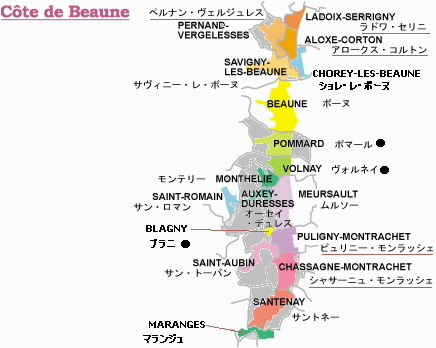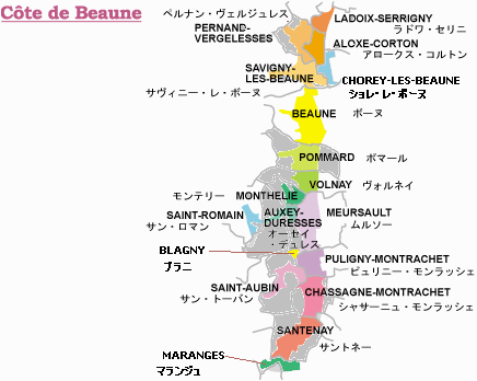 <コート・ド・ボーヌの地図>