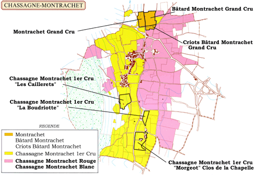 <モンラッシェのグラン・クリュの位置関係>